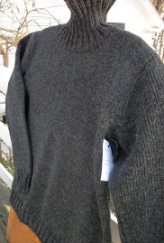 A mid weight wool turtleneck pullover shown in charcoal features a 2×2 ribbing, set in sleeves for a more tailored fit and deep loose neck for warmth and comfort. An everyday sweater for any and all occasions.